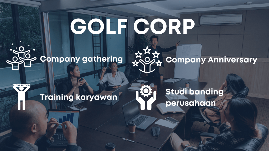 Golf Edu untuk kebutuhan dunia pendidikan anda baik edutrip, pertukaran pelajaran, dan lain-lain. Sedang Golf Corp mencakup Training karyawan, Family Gathering atau kebutuhan perusahaan anda yang lain.